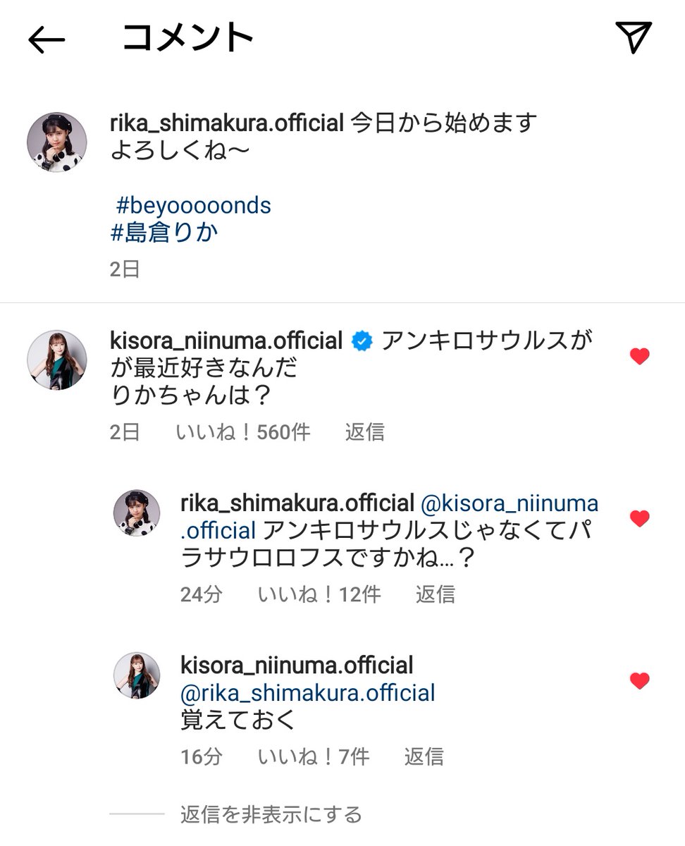 私アンキロサウルス好きなんだけど?は相手側のインスタリプ欄で言う事ではない
