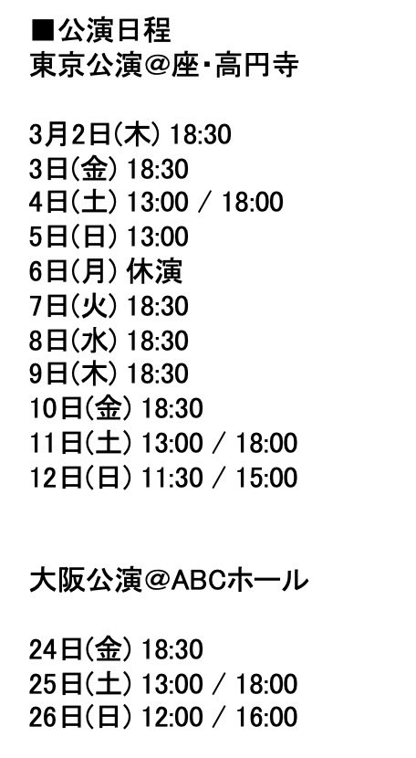 3月24日(金)から3月26日(日)まで大阪・ABCホールにて上演される。
