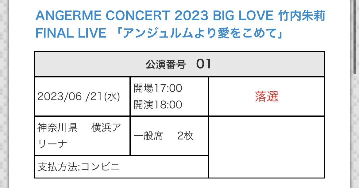 【衝撃】アンジュルム竹内朱莉卒コン@横浜アリーナがいくらなんでも落選祭りすぎてもはや横横アリ疑惑まで出始めるwwwwwwwwww