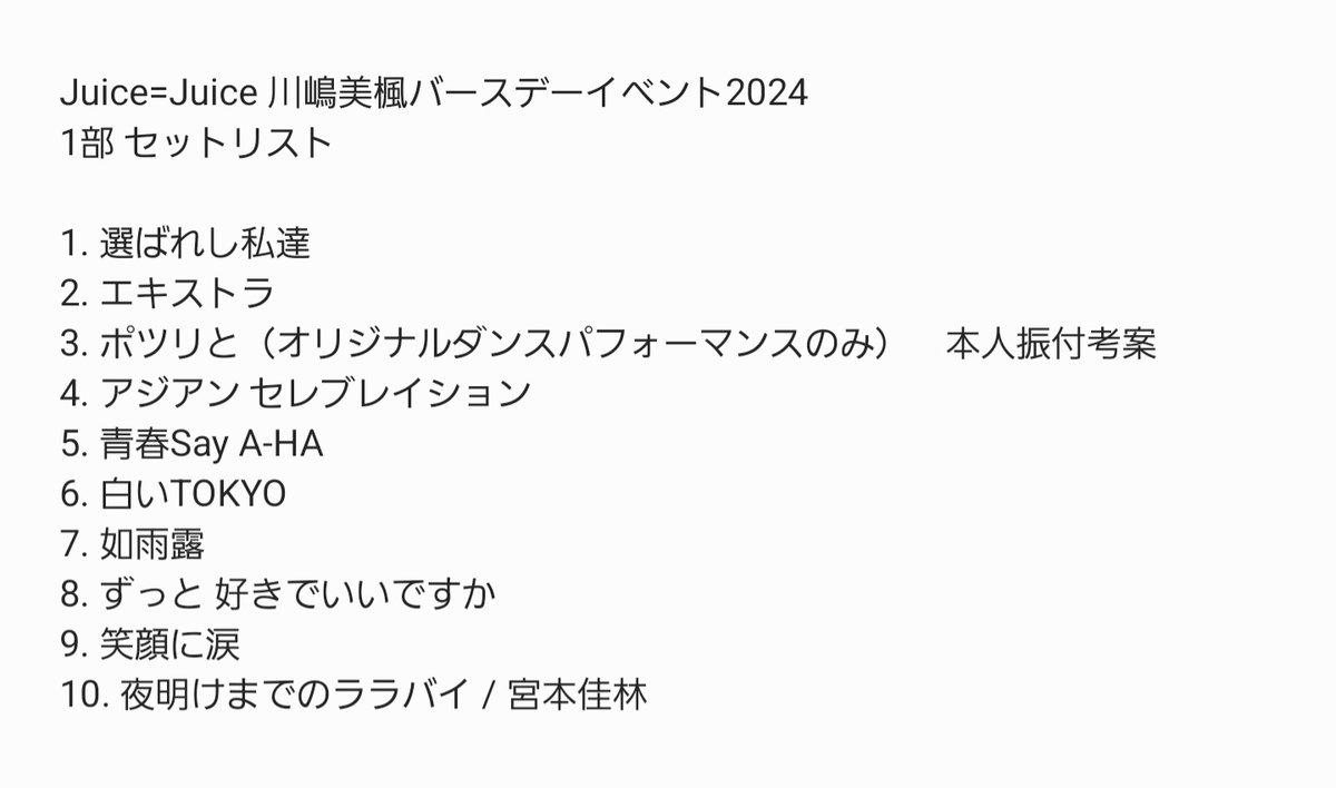 【速報】Juice=Juice川嶋美楓さんバースデーイベントのセットリスト(セトリ)がモーニング娘。だらけ━━━━(゚∀゚)━━━━!!