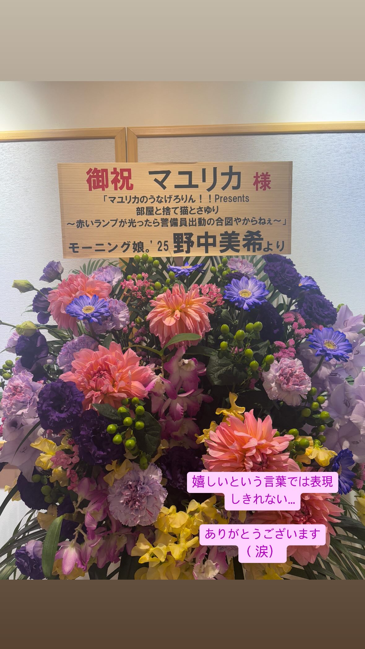 【朗報】野中美希さん、自分を推してくれているお笑い芸人のイベントにスタンド花を贈るしごできなお知らせ