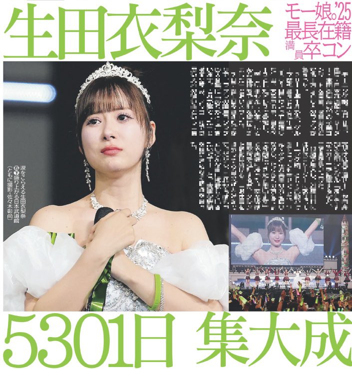 【速報】モーニング娘。’25生田衣梨奈さん卒コン日本武道館公演、動員数1万200人キタ━━━━(゚∀゚)━━━━!!