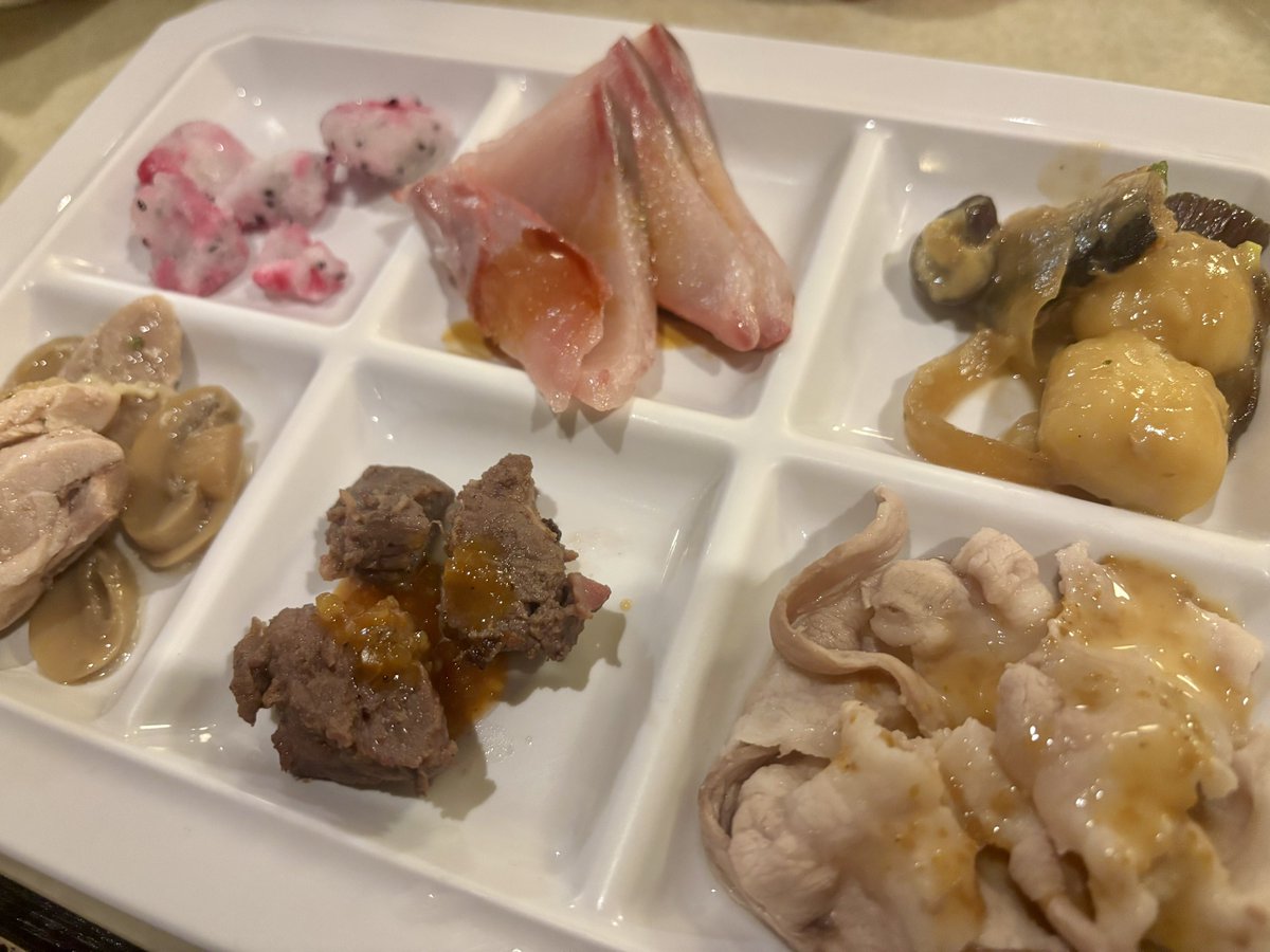夕飯、豪華なビュッフェでおいしかった☺しゃぶしゃぶが🫶