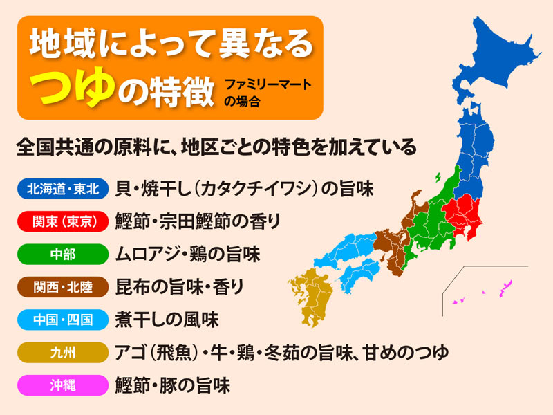関東にしかないおでんの具=ちくわぶ、はんぺん 関西=牛筋、ウインナー、鯨の部位、串こんにゃく、じゃがいも、タコの足