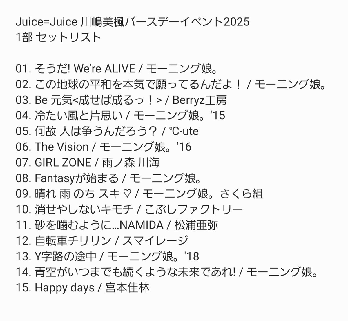 【速報】Juice=Juice川嶋美楓さん18歳のバースデーイベント、セットリストが満を持してモーニング娘。祭りwwwwwwwwwwwww
