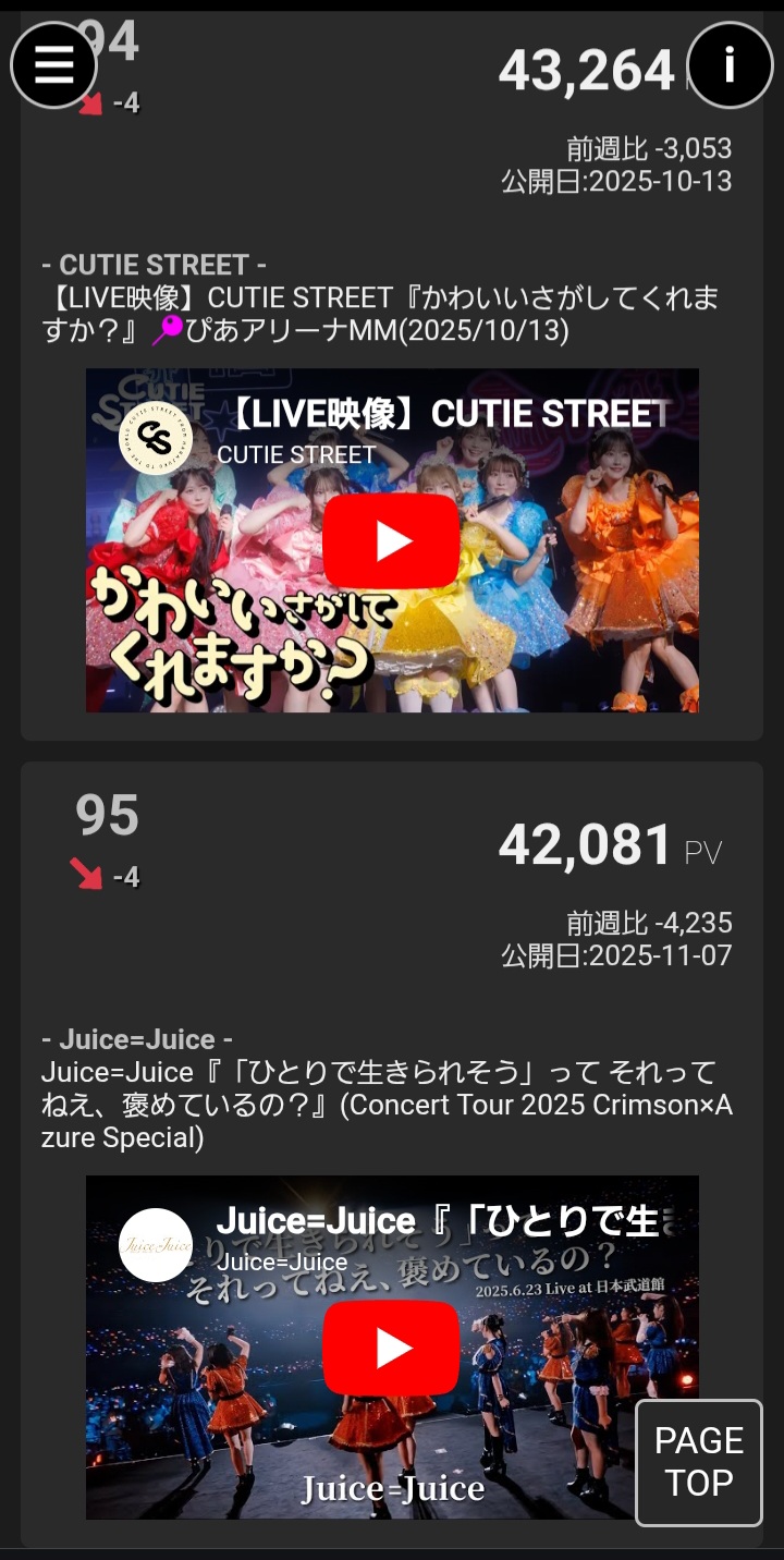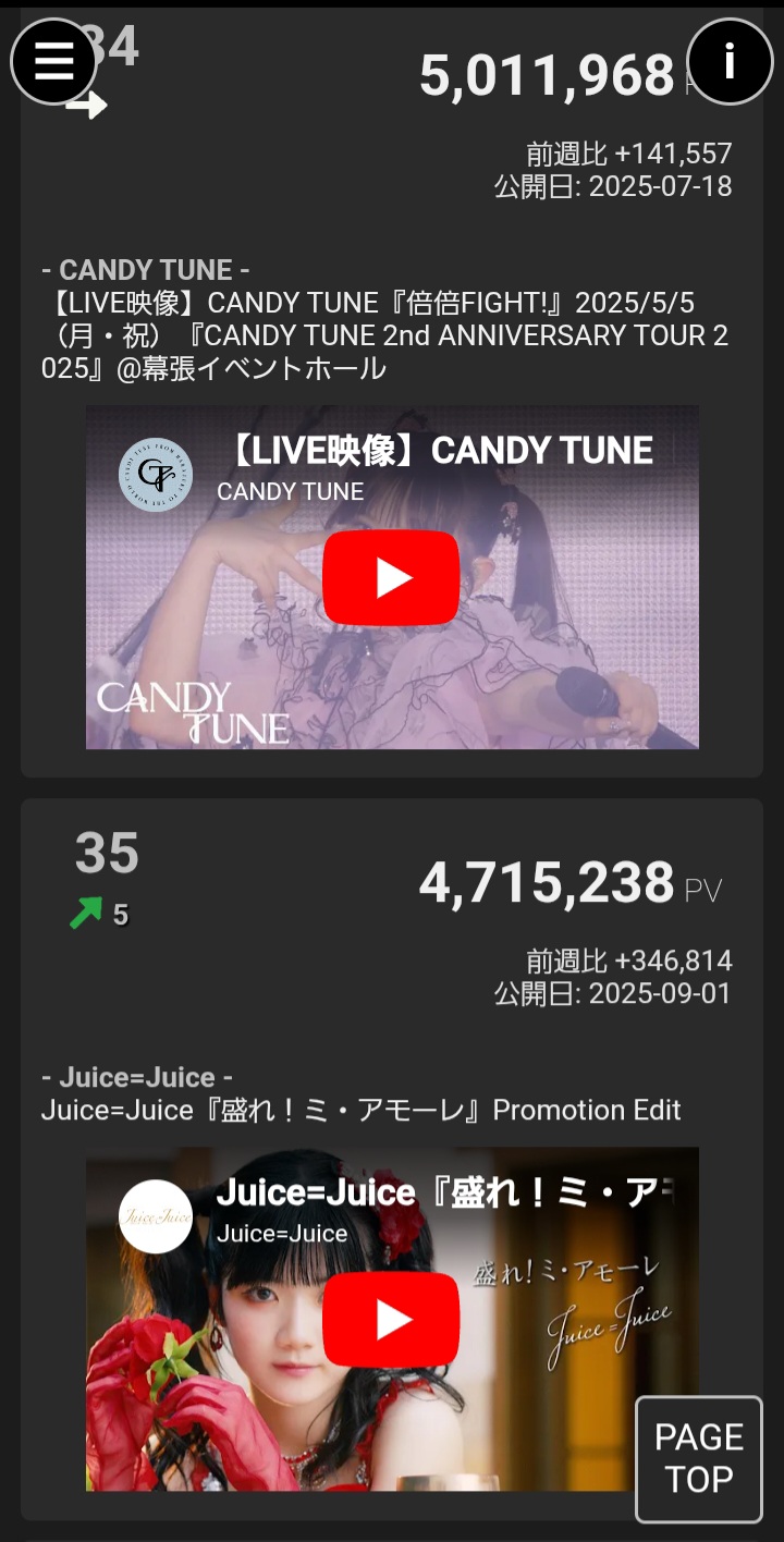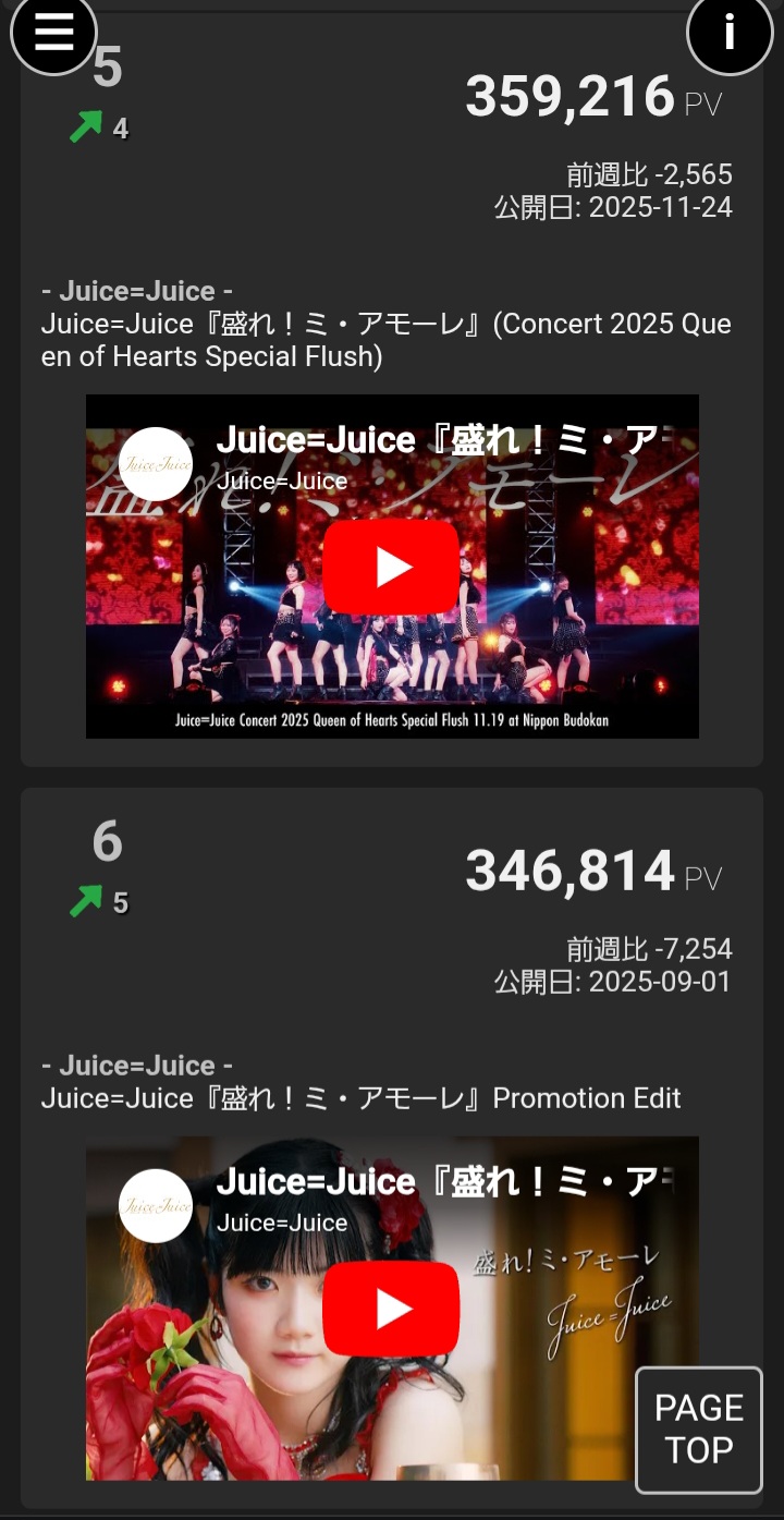 【速報】Juice=Juice「盛れ!ミ・アモーレ」MV再生回数が2025年の日本女性アイドル総合順位35位に浮上!週間再生回数は総合6位!