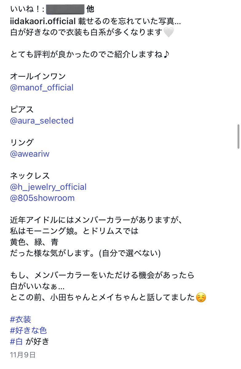 これ飯田さんが去年インスタで発言してたスクショなんだね
