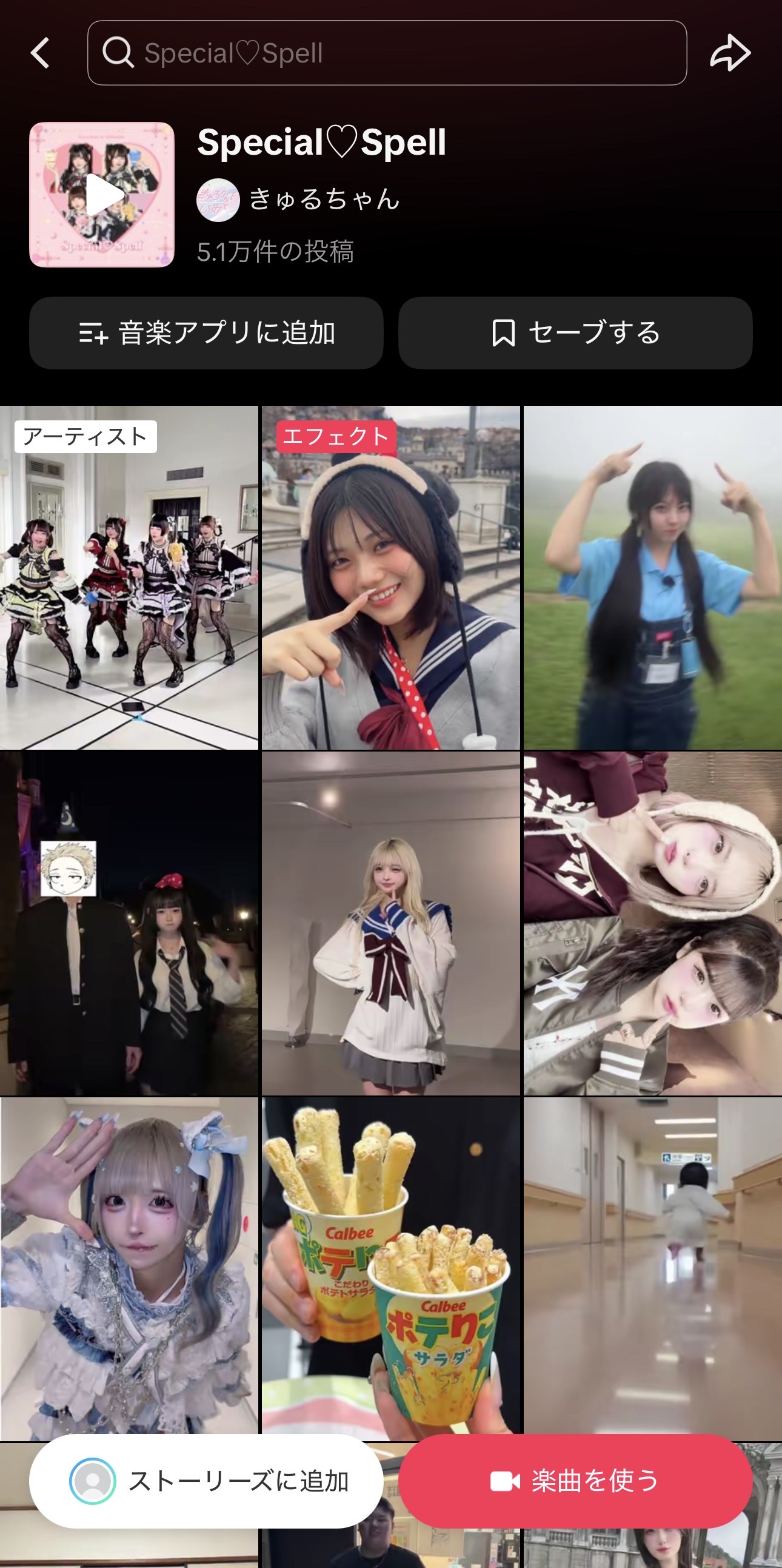 『きゅるりんってしてみて』は数万本の曲が多数
