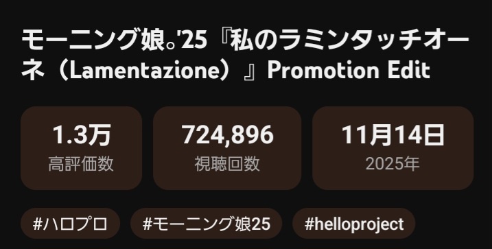 モーニング娘。’26さんは本日の『うたコン』で『私のラミンタッチオーネ(Lamentazione)』を『盛れ!ミ・アモーレ』よりバズらせられるか