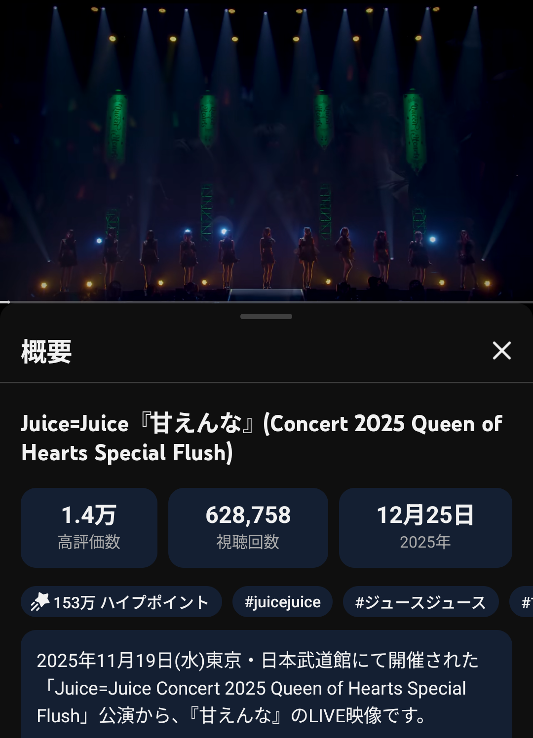 Juice=Juiceの『甘えんな』とかいう謎曲のライブ動画、1ヶ月ほどで60万視聴を超え好調な模様