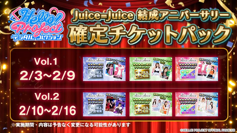 「レアリティ確定チケットパック」に、Juice=Juiceの結成13周年を記念して「Juice=Juice 結成アニバーサリー確定チケットパック」が登場‼🎂