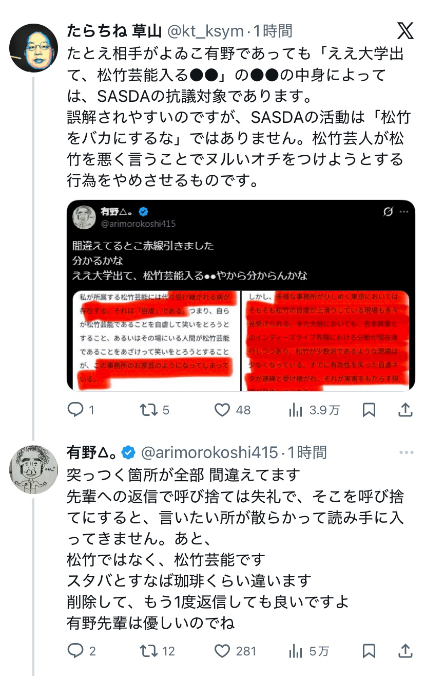 ハロヲタ有野、後輩とレスバトル