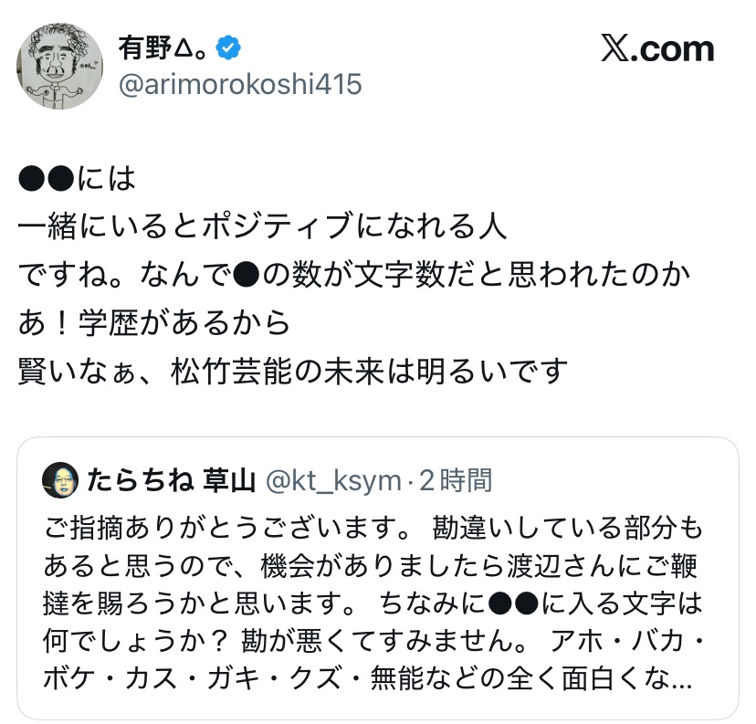 あの有野が訳のわからん後輩?に噛みついてんの?