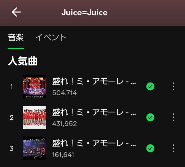 【速報】Juice=Juice「盛れ!ミ・アモーレ」日本武道館ライブバージョン、Spotifyで50万再生突破キタ━━━━(゚∀゚)━━━━!!