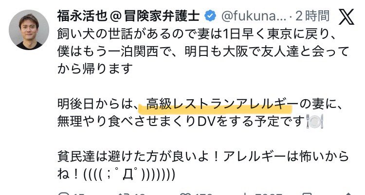 食物アレルギー誰にでも発症する可能性のある身近な症状でN党支持者の中にもいるだろうにわざわざ味方にも敵作る意味がわからん