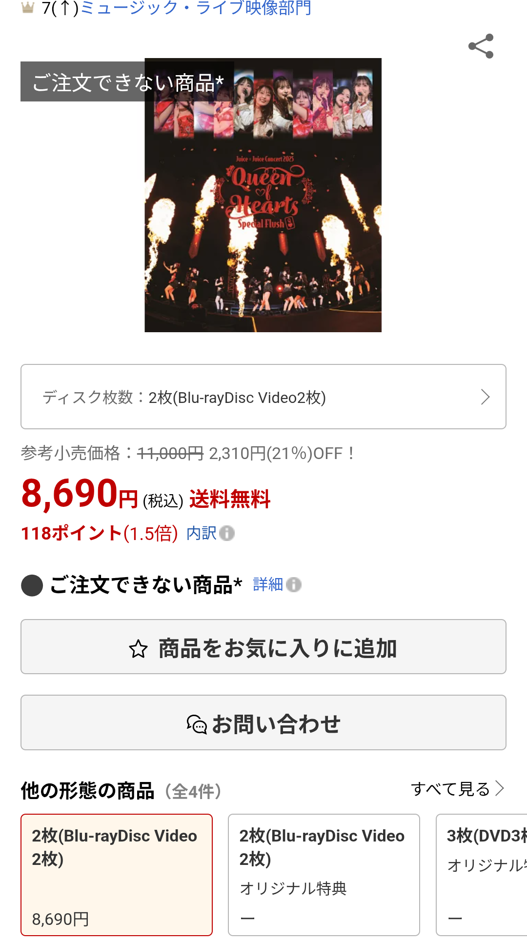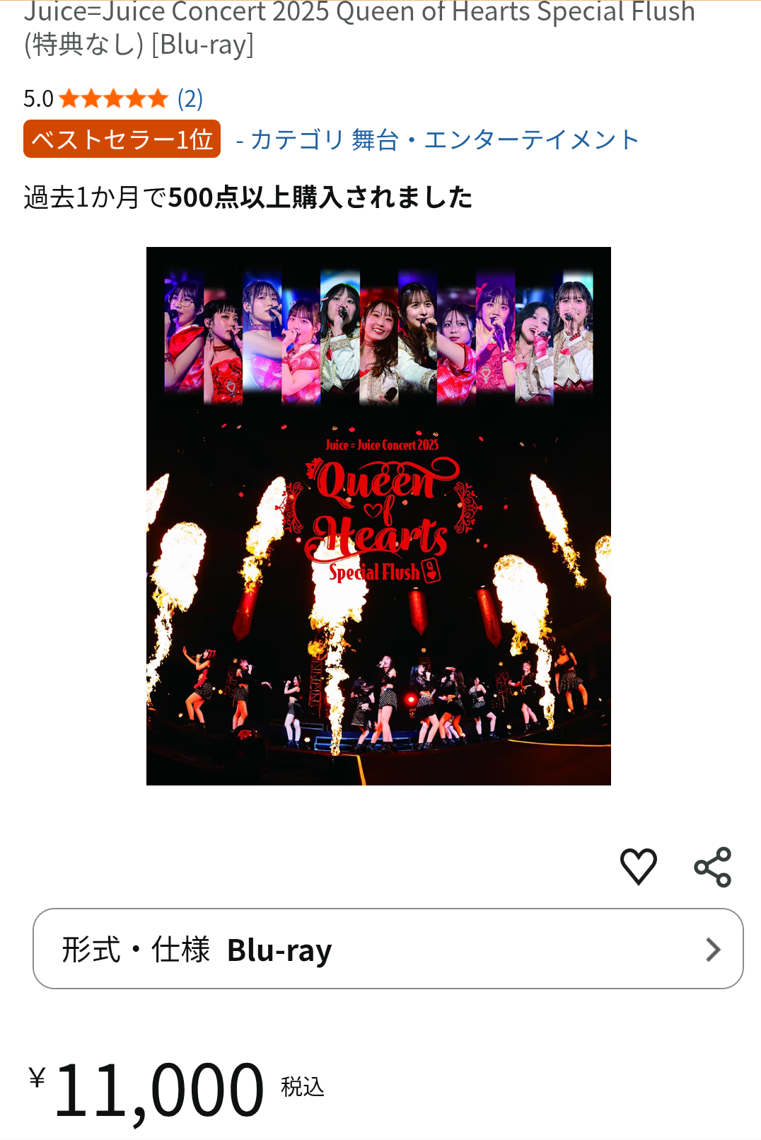 【衝撃】『Juice=Juice Concert 2025 Queen of Hearts Special Flush【Blu-ray】』楽天でBlu-ray・DVDとも全て在庫切れ