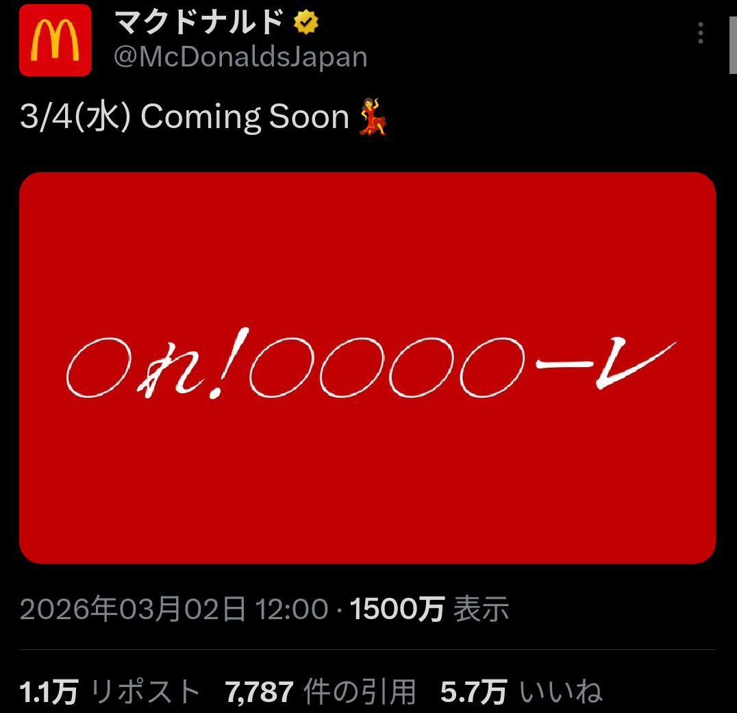 マクドナルドのXは流行ったものに乗っかるの好きだな