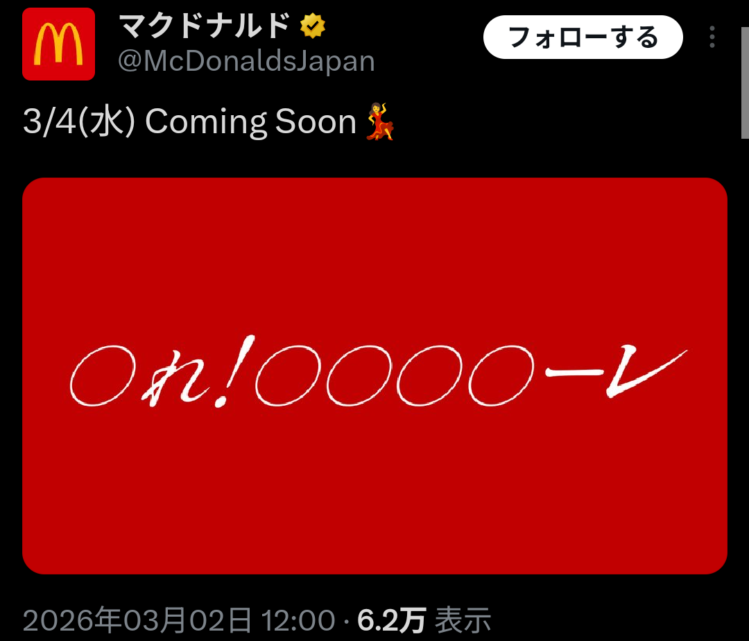 マクドナルド「○れ!○○○○ーレ Coming Soon💃」