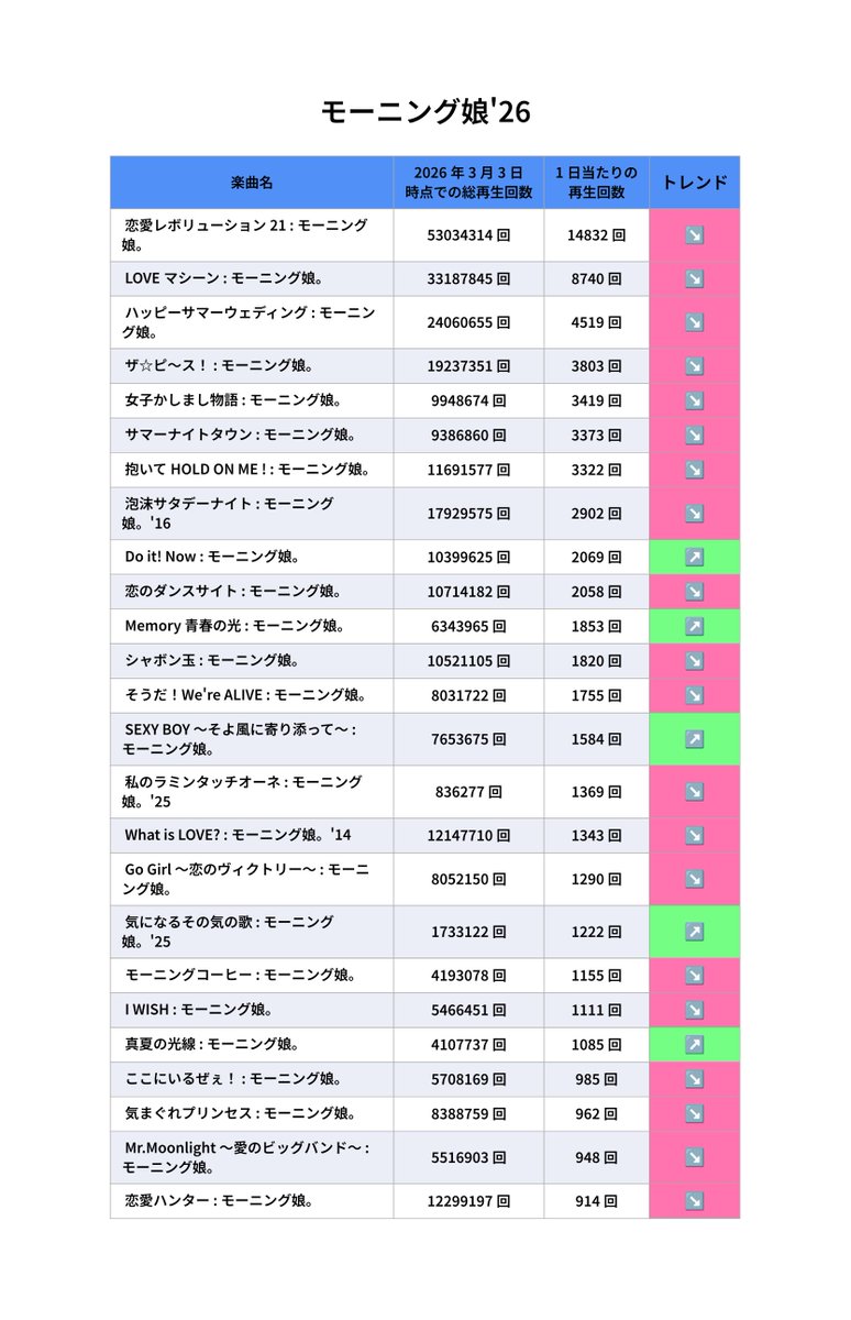 #hpytvc 昨日からの再生回数: #モーニング娘26