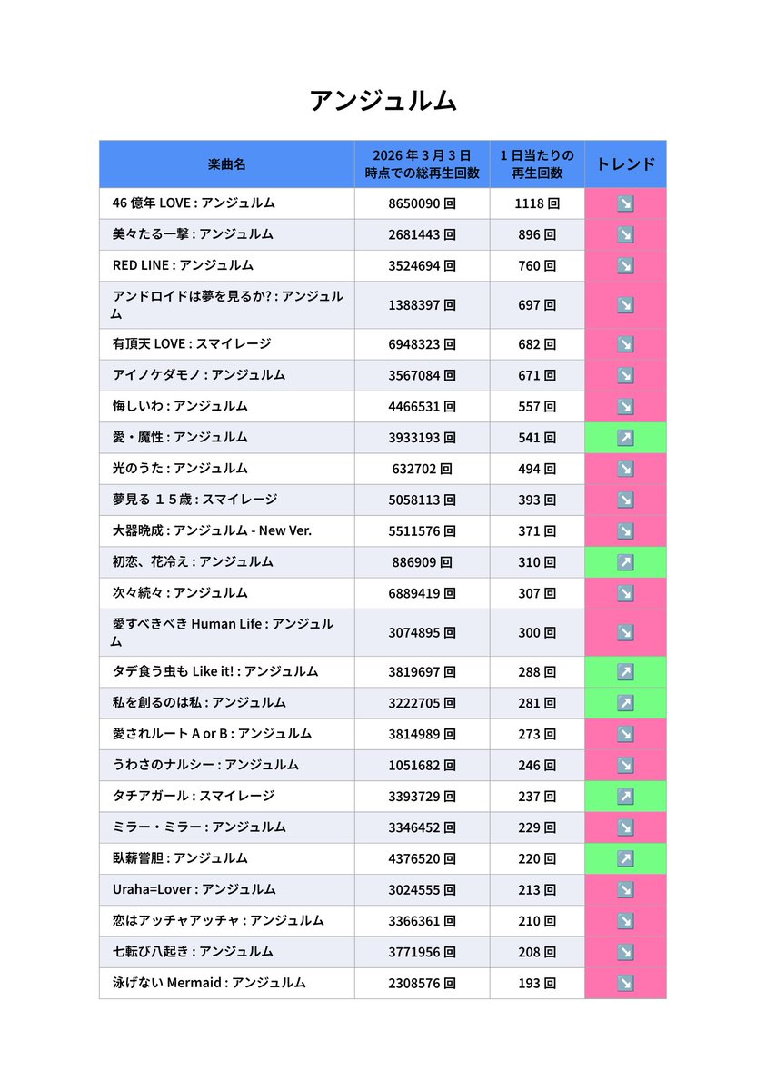 サブスクが解禁されて、YouTubeの旧譜のMV再生回数がだいぶ減ってるな