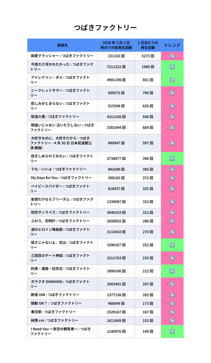 #hpytvc 昨日からの再生回数: #つばきファクトリー