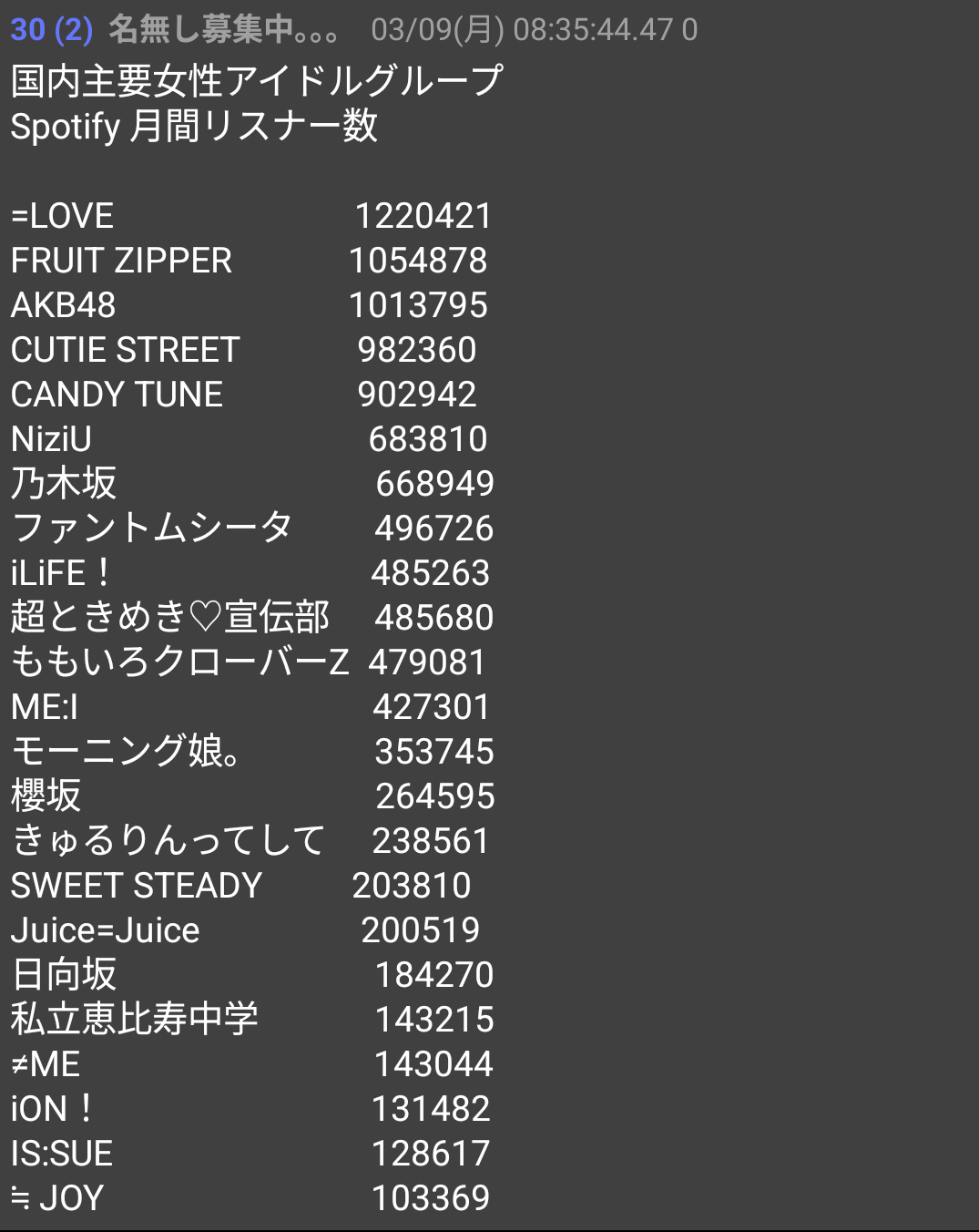 エビ中なんてKアリやったけど去年までのアンジュース以下