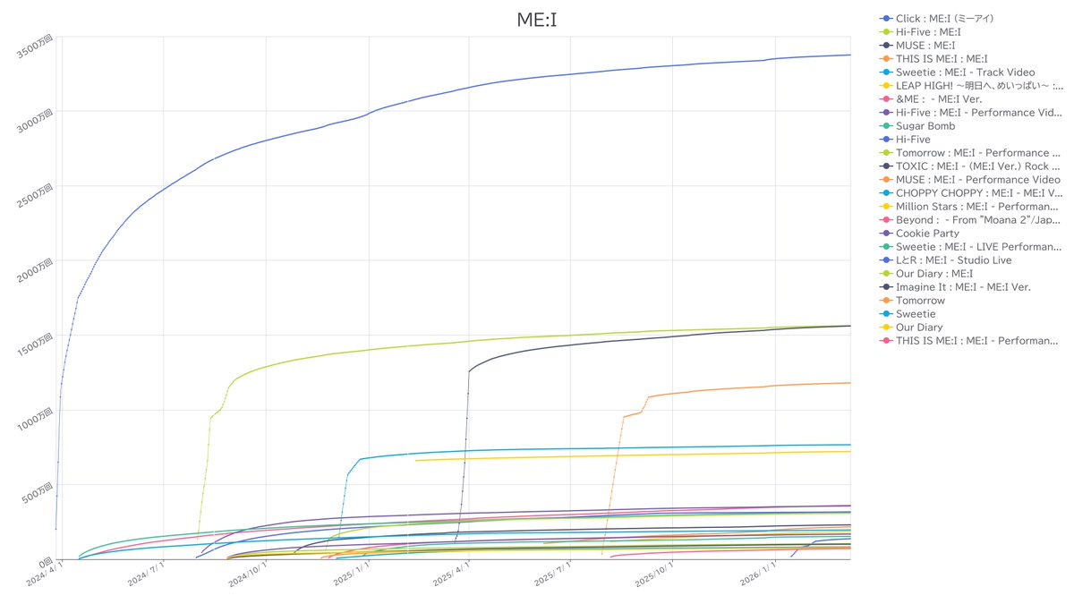 MVが出たら莫大な視聴回数買いにお金が使われてるので視聴回数伸びグラフが異常な形になってる