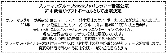 鈴木愛理ゲスト出演『ブルーマングループ2026ジャパンツアー』新宿公演 FC先行受付のお知らせ