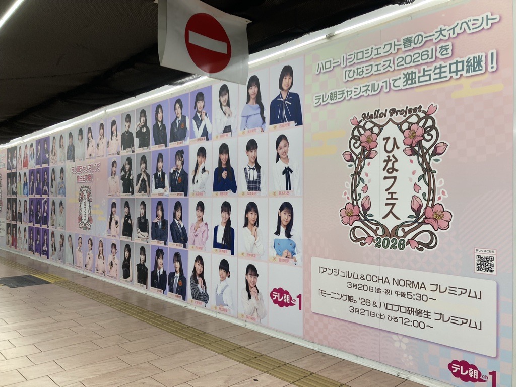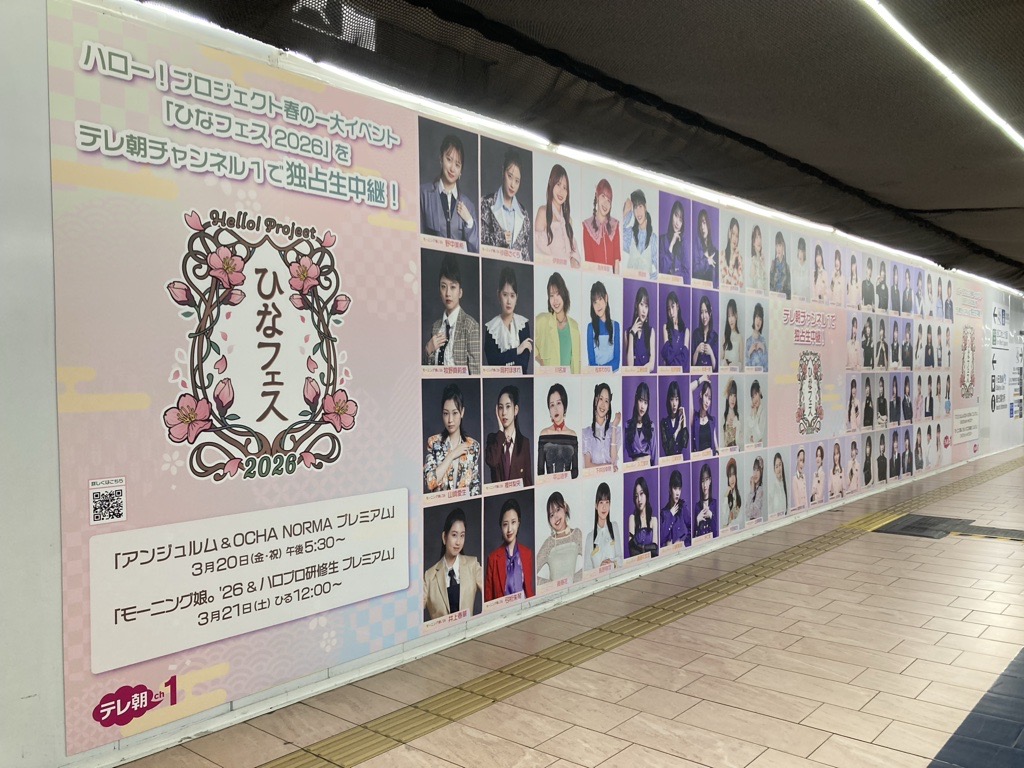 新宿駅にハロプロひなフェスの広告ポスター