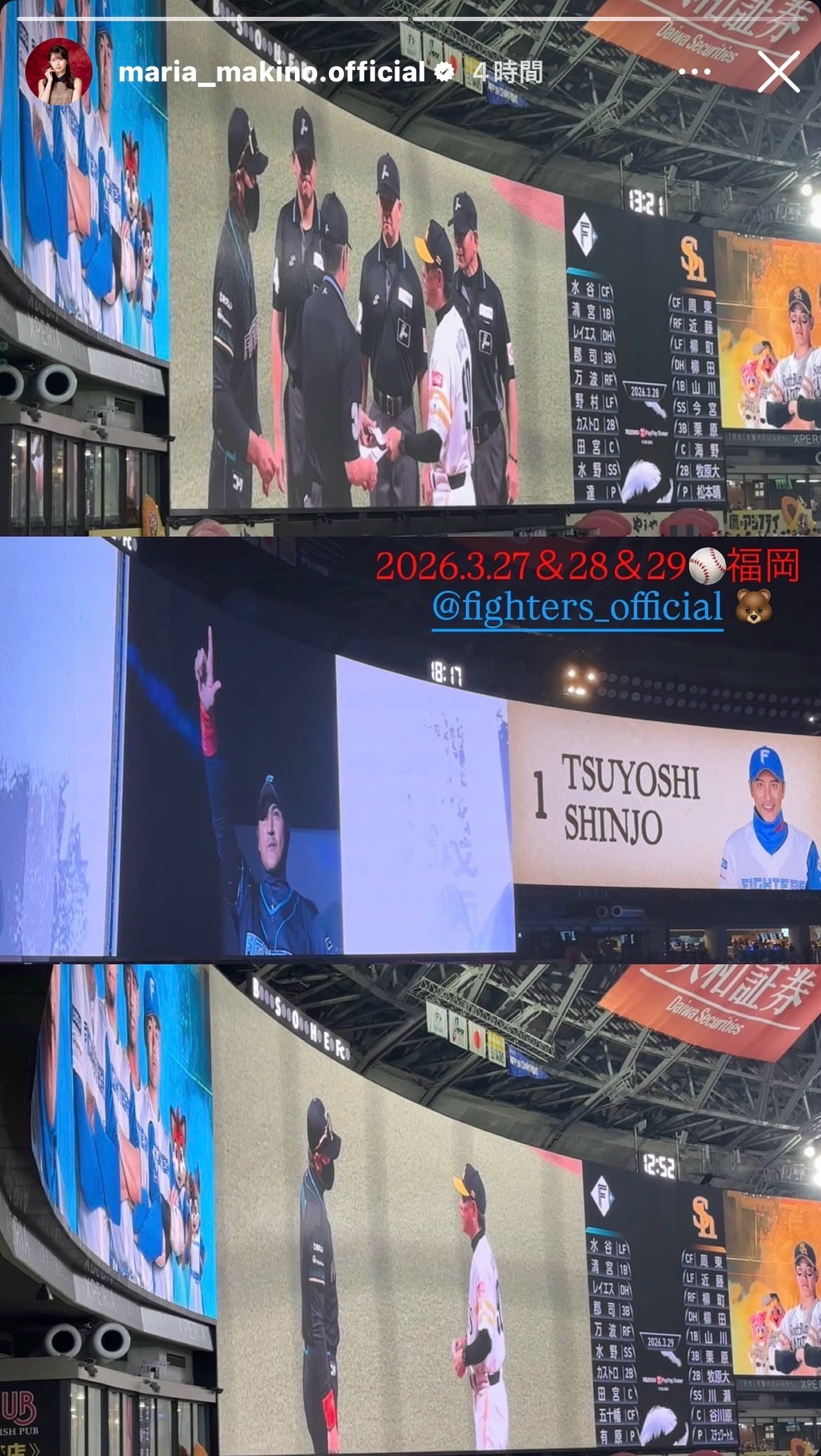 【朗報】病み上がりの牧野真莉愛ちゃん、日ハム開幕3連戦を福岡で元気に観戦したよ!