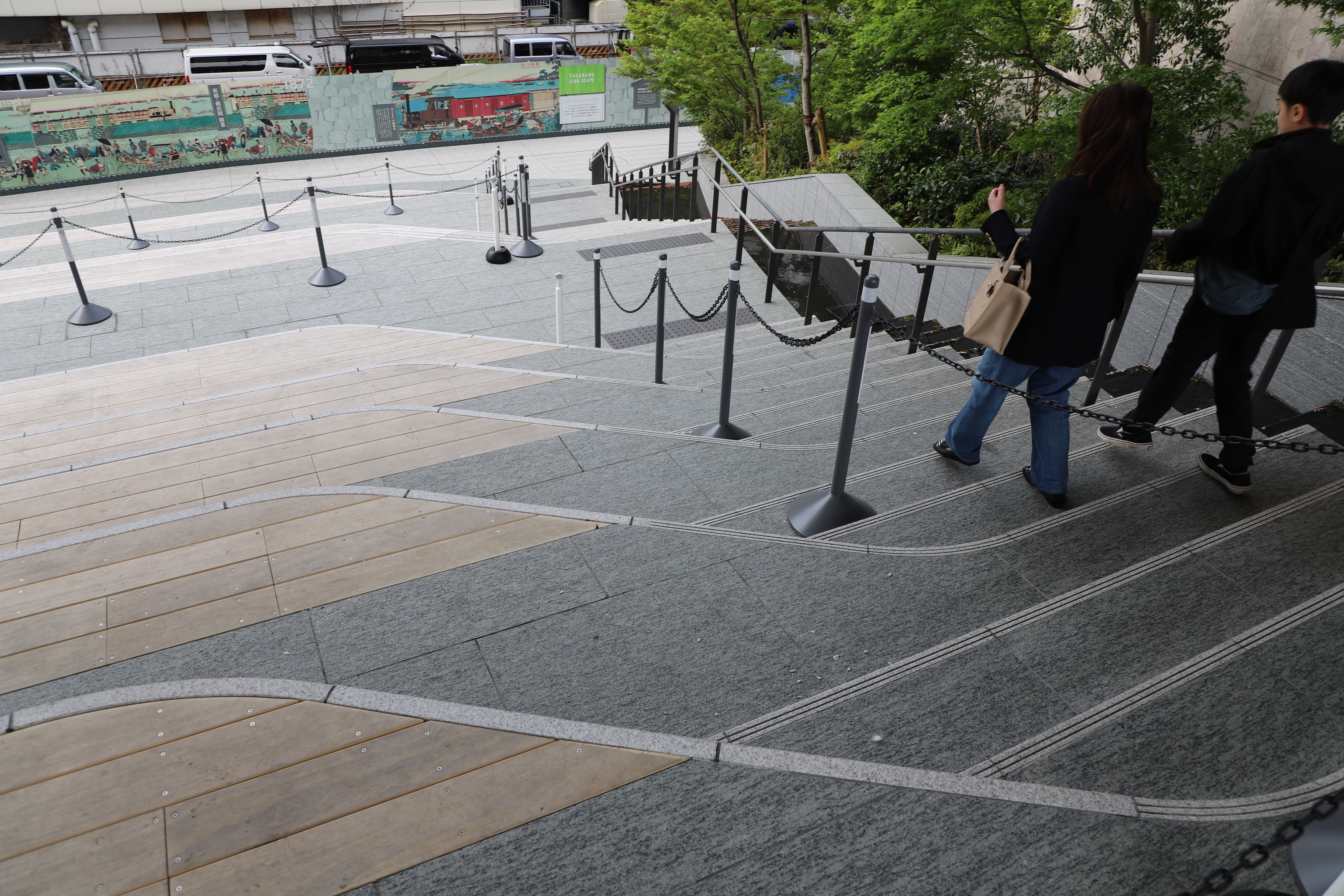 【画像】JR高輪ゲートウェイ駅直結の複合施設「高輪ゲートウェイシティ」の敷地内にある 階段を目の錯覚で踏み外し大怪我する人が続出