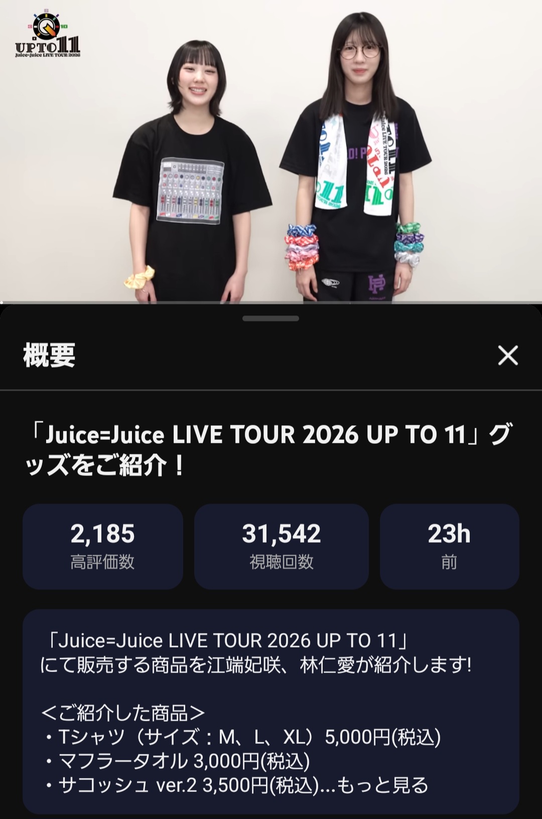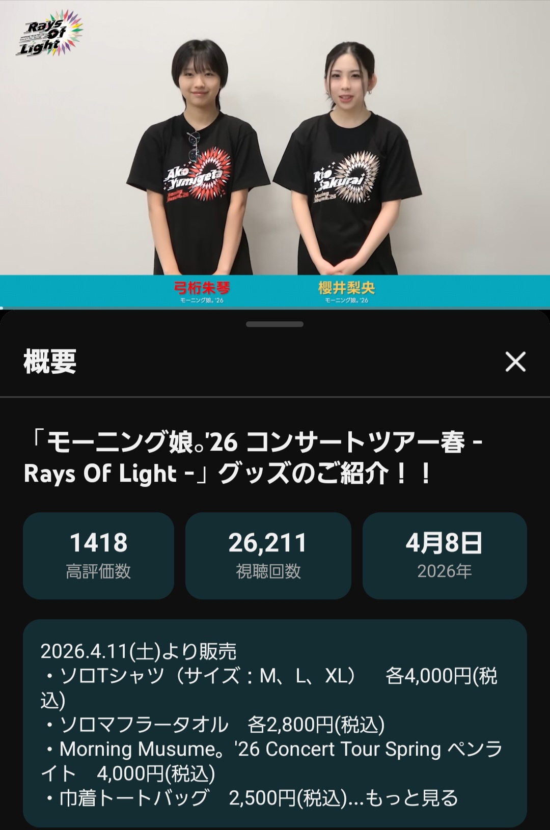 【悲報】モーニング娘。’26櫻井梨央さんと弓桁朱琴さんの春ツアーグッズ紹介動画、Juice=Juice江端妃咲と林仁愛の同内容動画に完敗ww