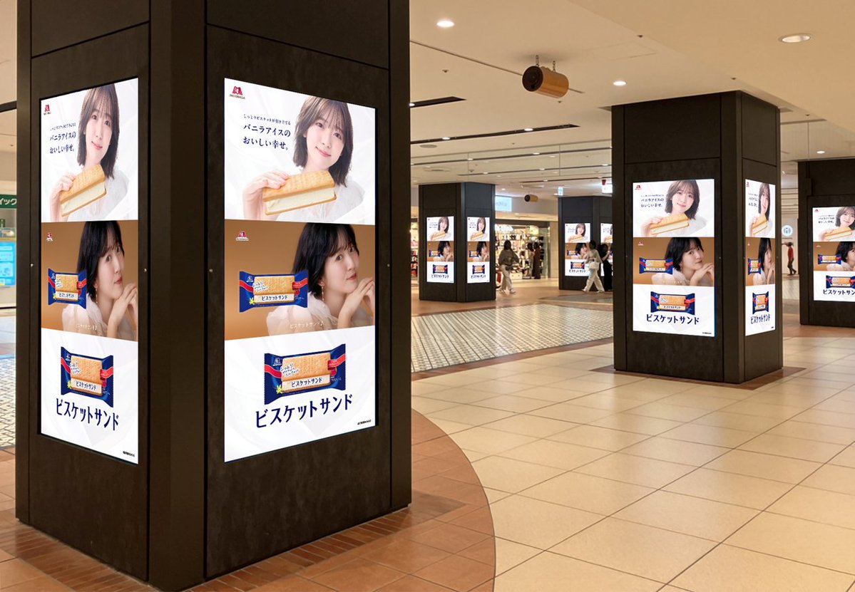 東京駅ヤエチカで今度は鈴木愛理の森永ビスケットサンドアイスのデジタルサイネージが放映中らしい
